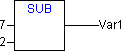 IEC operator⮫ “Overview”: Subtraction of one variable from another of the types: BYTE, WORD, DWORD, SINT, USINT, INT, UINT, DINT, UDINT, REAL and LREAL.