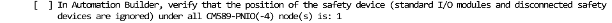 If applicable, verify that the position number of the safety device in the SVT checklist corresponds to its location in the safety project in Automation Builder. The position number for the given safety device can change if their CM589-PNIO(-4) nodes are moved in the project.